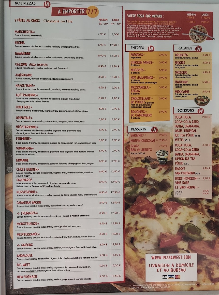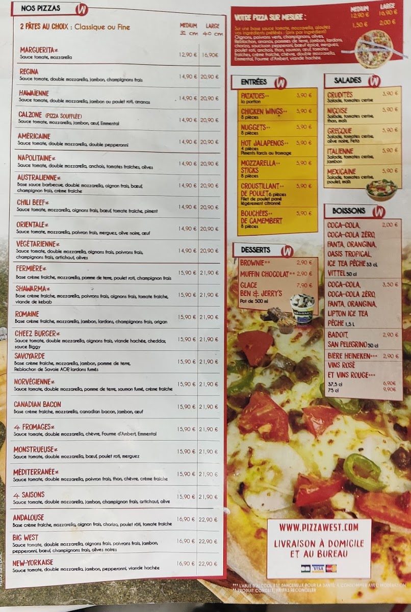 In conclusion, the menu at Pizza West offers a satisfying variety that caters to different cravings, from classic comfort food to more indulgent specialties. The Pizza selection stands out as the heart of the menu, offering generous toppings and well-balanced flavors that make it a reliable choice for both casual meals and group orders. For those looking for something different, the Cheez Burger delivers a hearty, flavorful option with a juicy patty and classic toppings, while the Chawarma adds a welcome touch of spice and variety, appealing to those who enjoy bold, savory flavors. One of the more distinctive items, the Savoyarde, brings a richer, more indulgent taste, perfect for diners who enjoy creamy, cheese-forward dishes. Overall, the menu feels well-rounded and accessible, making Pizza West a convenient spot for a relaxed meal with something for everyone.